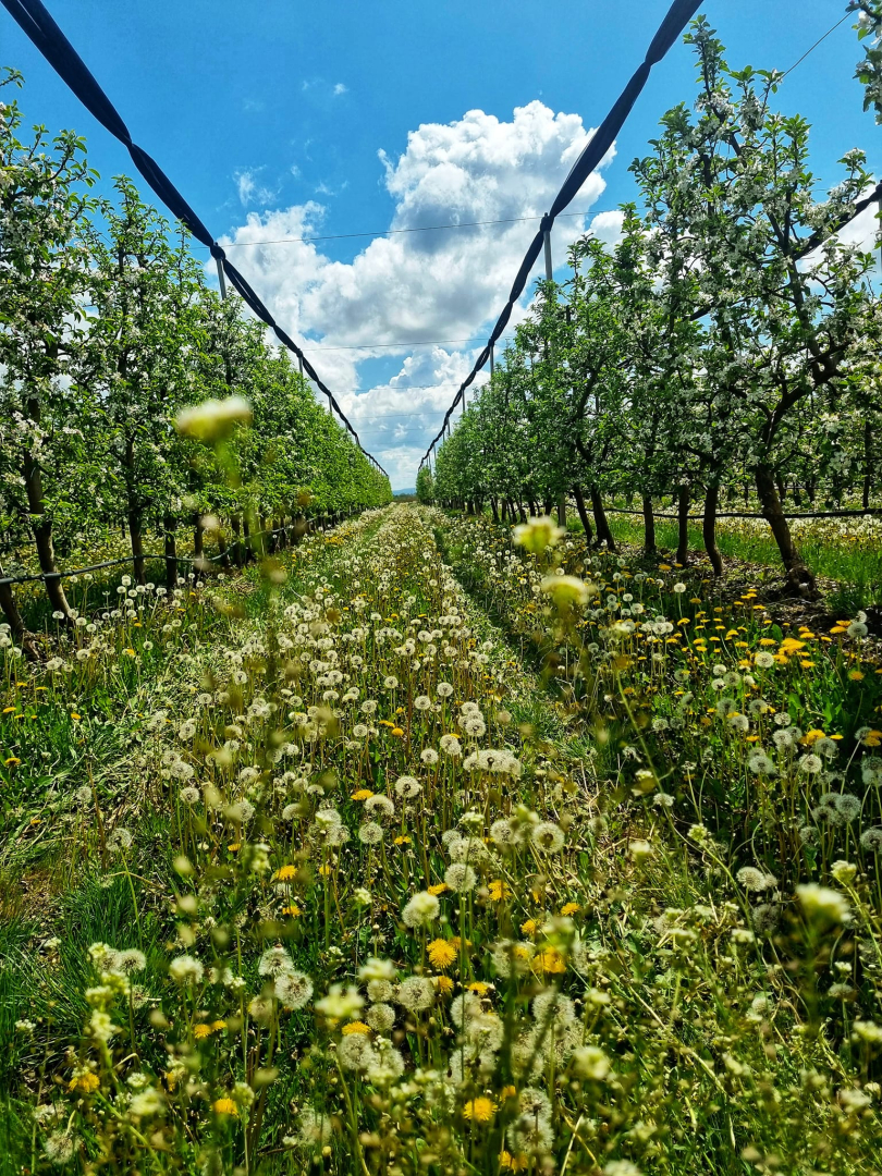 Livada este construită în sistem intensiv, cu sistem de irigare cu picătură și de fertigare asistată de calculator.